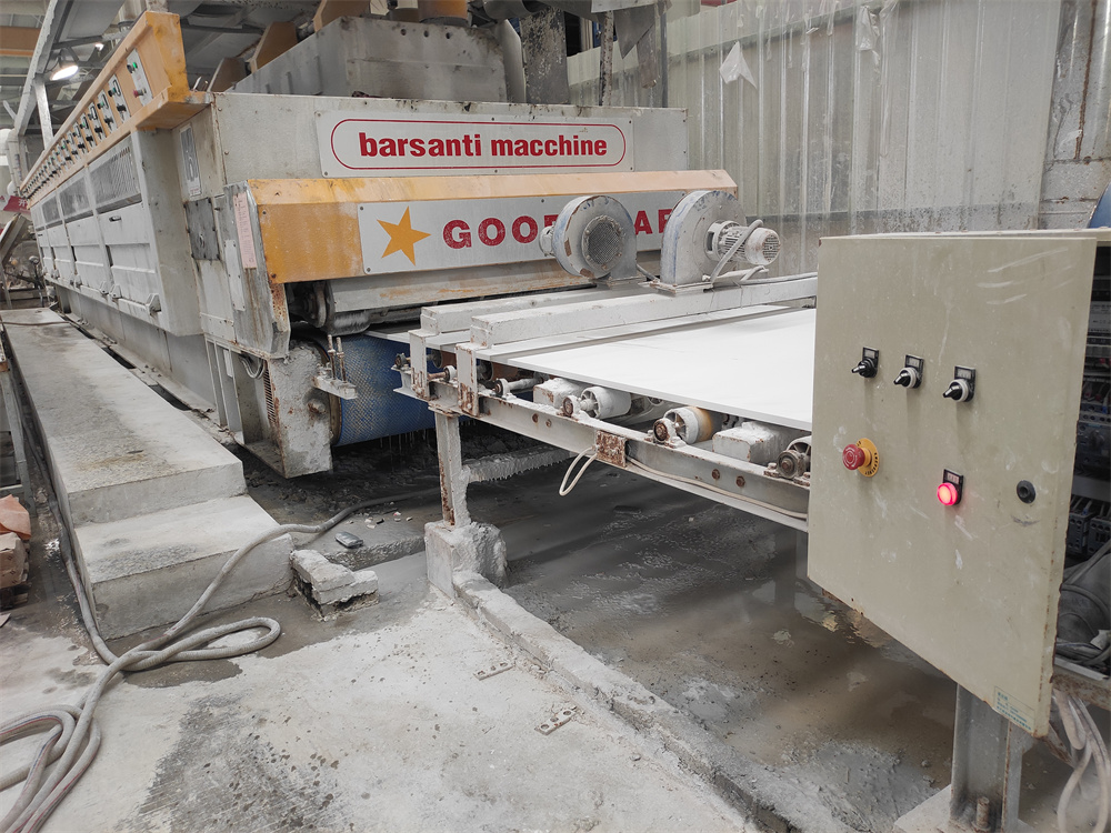 4. Calibrating: The quartz stone slab is then passed through a calibrating machine, which shapes and sizes the slab to the desired specifications.